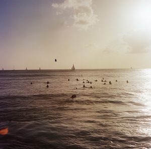 Attendre la vague, Waikiki, O’ahu, Hawaï, 2017.